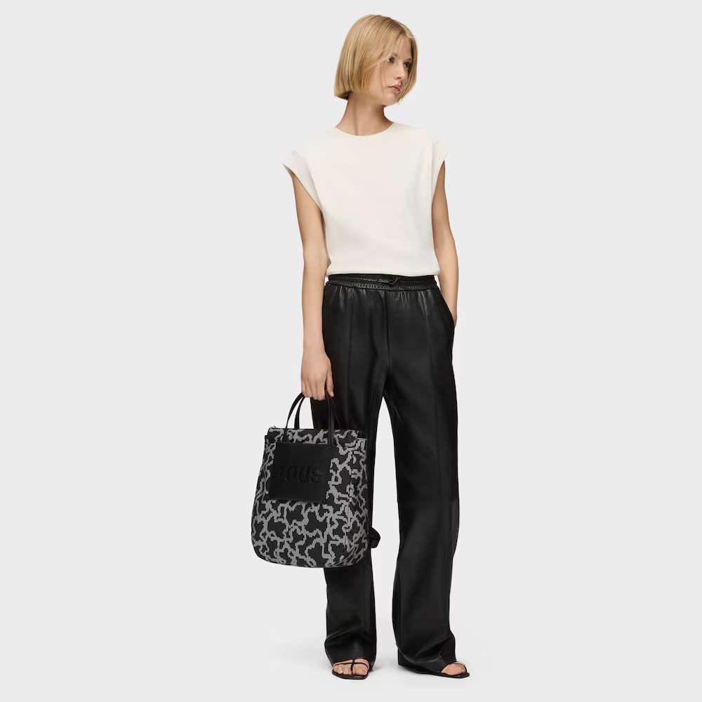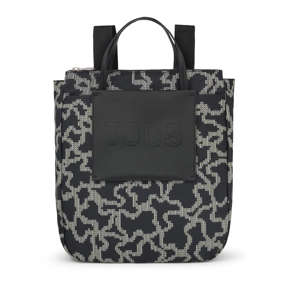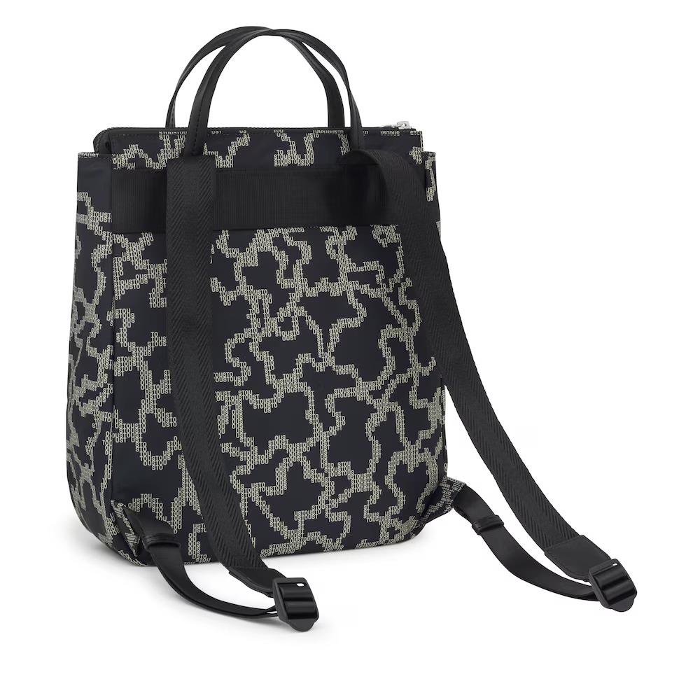 Σακίδιο TOUS Kaos Pix Soft από ανακυκλωμένο πολυεστέρα με μαύρο και μπεζ μοτίβο. Διαθέτει επίσης διακοσμητικά στοιχεία από συνθετικό δέρμα. Κύρια θήκη με φερμουάρ και ανοιχτή τσέπη στο εσωτερικό. Μπροστινή τσέπη με μαγνητικό κλείσιμο. Σταθερά χερούλια. Ρυθμιζόμενα λουράκια ώμου. Διαστάσεις (ύψος x πλάτος x βάθος): 35 x 32 x 11,5 cm.